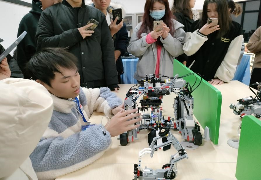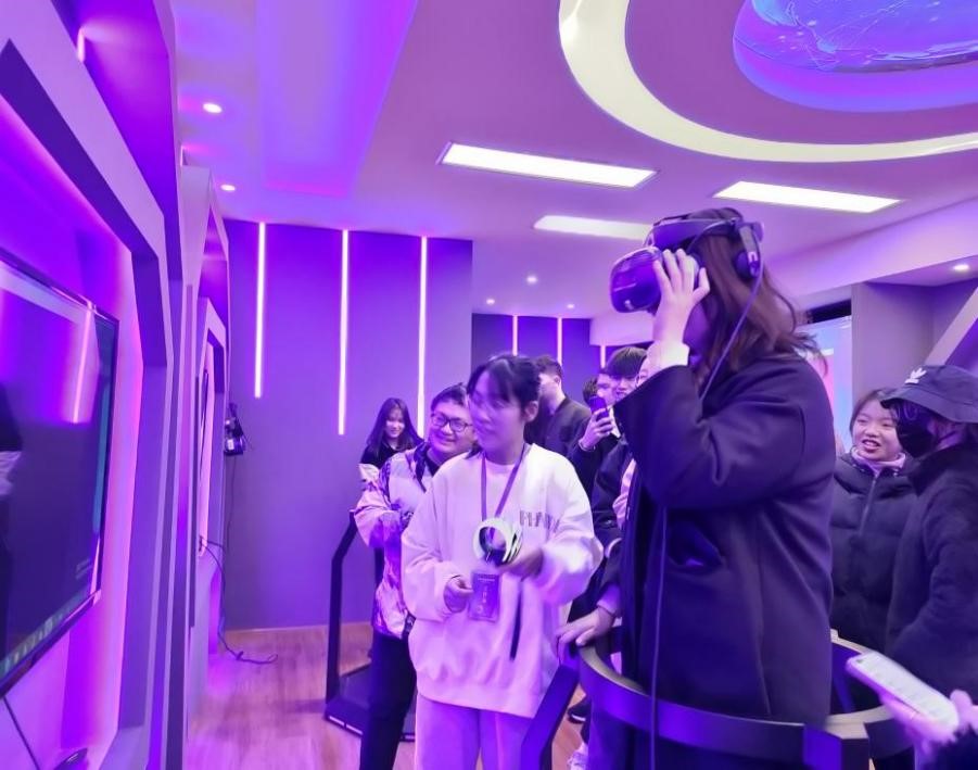 随后,引导员带领同学们参观3D打印室、乐高机器人展厅和VR体验室,同学们亲身体验了科技的巨大魅力。