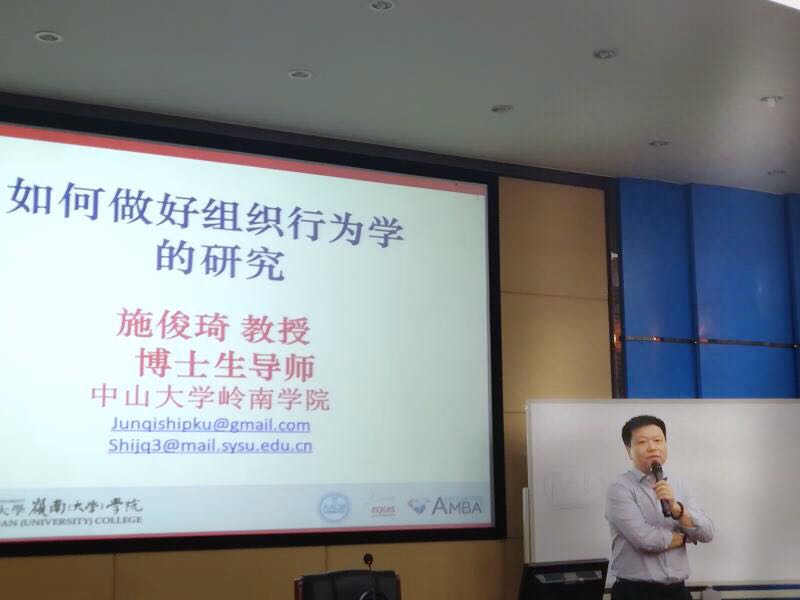 在此次学术报告中,施俊琦教授首先指出做OB研究对理论的要求是非常高的,在研究之前需要阅读大量的著作和文献做积累,并对人格特质学说、社会交换理论、资源和自我调控理论及组织行为学在职业发展理论上的新进展做了详细介绍。接着说明如何从研究的样本、研究的创新、测量工具的选择和统计分析四个方面增强研究的理论贡献,指出当下研究生主要存在文献阅读的不够多及统计方法学的不够深入等不足,强调参加国际会议的重要性。