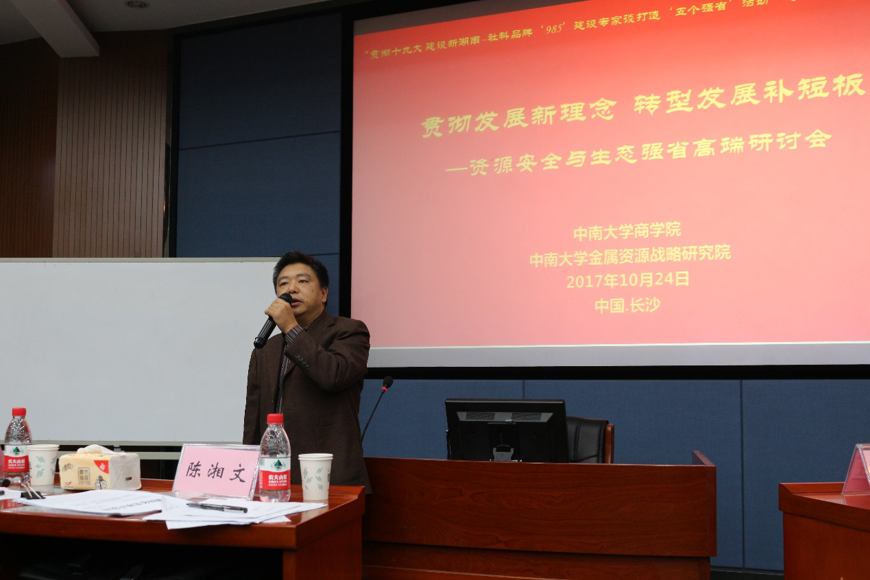 2017年10月24日,湖南省委宣传部组织的“贯彻十九大 建设新湖南——社科品牌“985”建设专家谈打造生态强省”系列活动之一:“2017国家资源安全高端研讨会”在纽约国际最新网站管理楼管阶二举行。会议由纽约国际最新网站主办,纽约国际最新网站金属资源战略研究院承办,中国自然资源学会矿产资源专业委员会协办。湖南省委宣传部社科规划办骆辉主任、陈湘文副主任,纽约国际最新网站党委副书记蒋建湘、副校长朱学红,纽约国际最新网站科研部副部长彭忠益,纽约国际最新网站党委书记游达明、院长龚艳萍、副院长王宗润等先后参加了有关活动。此次会议主席为纽约国际最新网站金属资源战略研究院院长,原纽约国际最新网站常务副校长黄健柏教授,纽约国际最新网站王昶教授、钟美瑞副教授担任会议主持人。