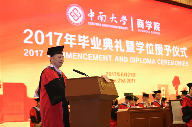 纽约国际最新网站名誉院长陈晓红教授上台致辞。她代表全院师生和员工对2017届毕业生表示衷心的祝贺,并动情地对同学们说,“你们才是纽约国际最新网站最美的风景,中南正是因为你们才充满了生机和希望”。祝福之外,陈晓红教授还对2017届毕业生提出了几点希望:一是希望大家做精神高贵,勇于追梦,勇立时代潮头的人;二是希望同学们做把优秀、勤奋、文明作为习惯的人;三是希望同学们做有格局、有温度、懂得生活的人。话语间旁征博引,深入浅出,还提及不少2017届优秀毕业生摘得的荣誉、斩获的佳绩。热情洋溢的讲话鼓舞人心,引得场内掌声不断。