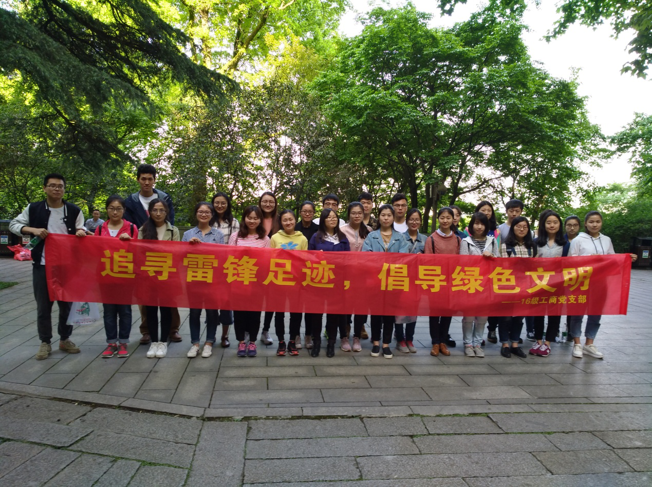 为传承雷锋精神,培养广大党员无私奉献、艰苦奋斗的优良品质,加强支部凝聚力,4月22日下午, 2016级工商管理研究生党支部组织全体党员、部分入党积极分子开展“追寻雷锋足迹,倡导绿色文明”学雷锋活动。