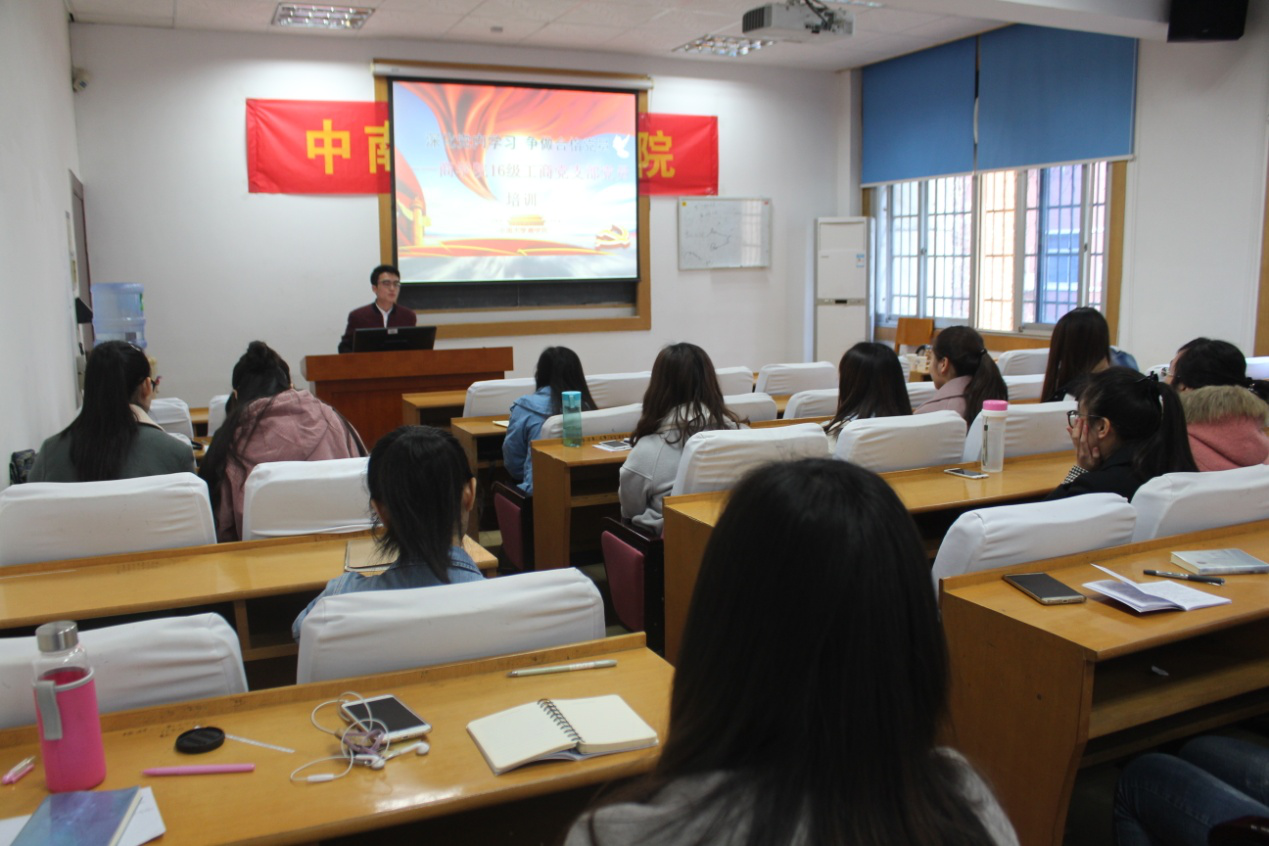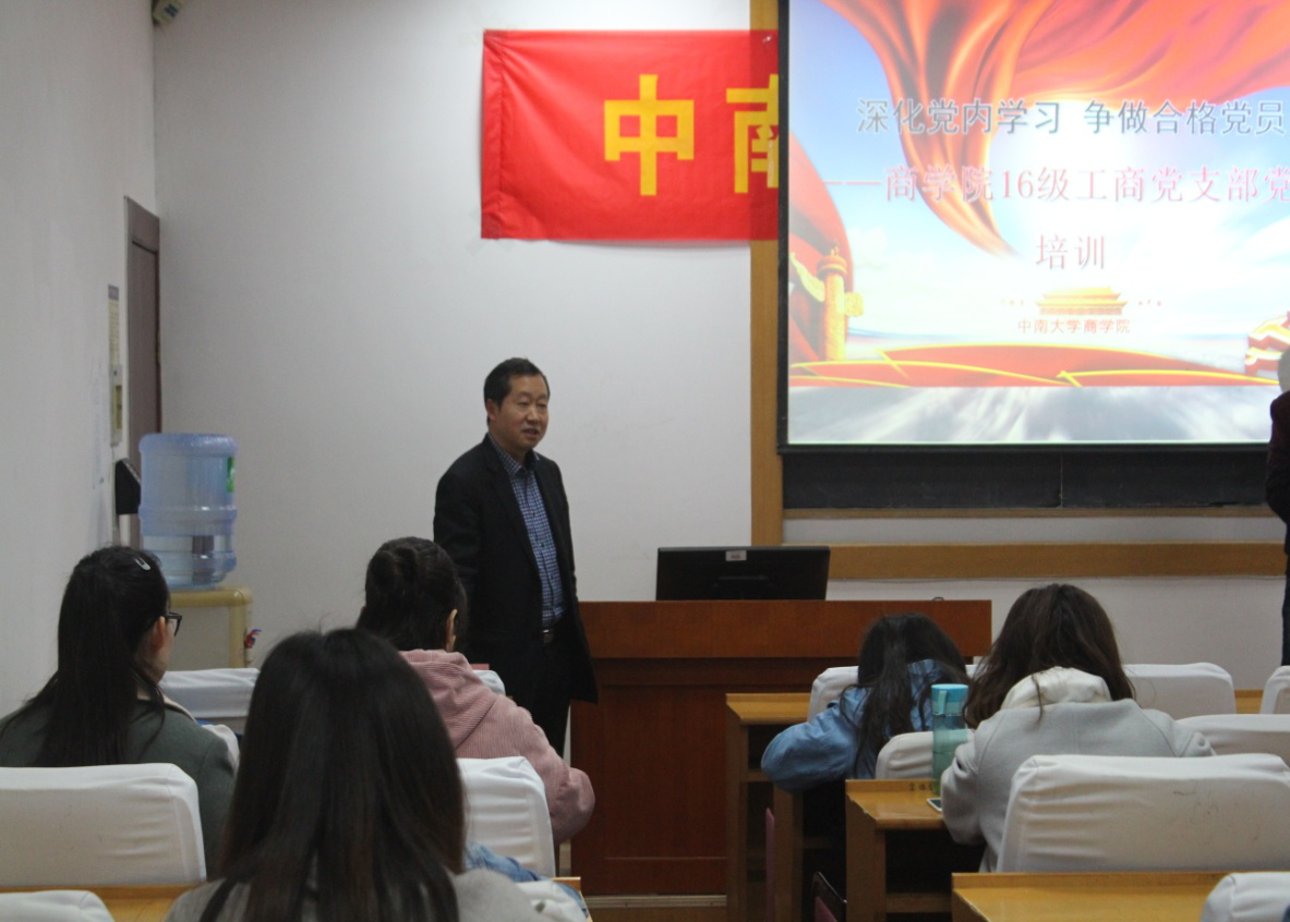 为贯彻落实学院党委关于深化党内学习的号召,3月31日, 2016级工商管理研究生党支部组织全体党员、入党积极分子以及有意愿入党的同学开展党的基本知识的学习活动,并邀请到学院党委书记游达明教授莅临指导。