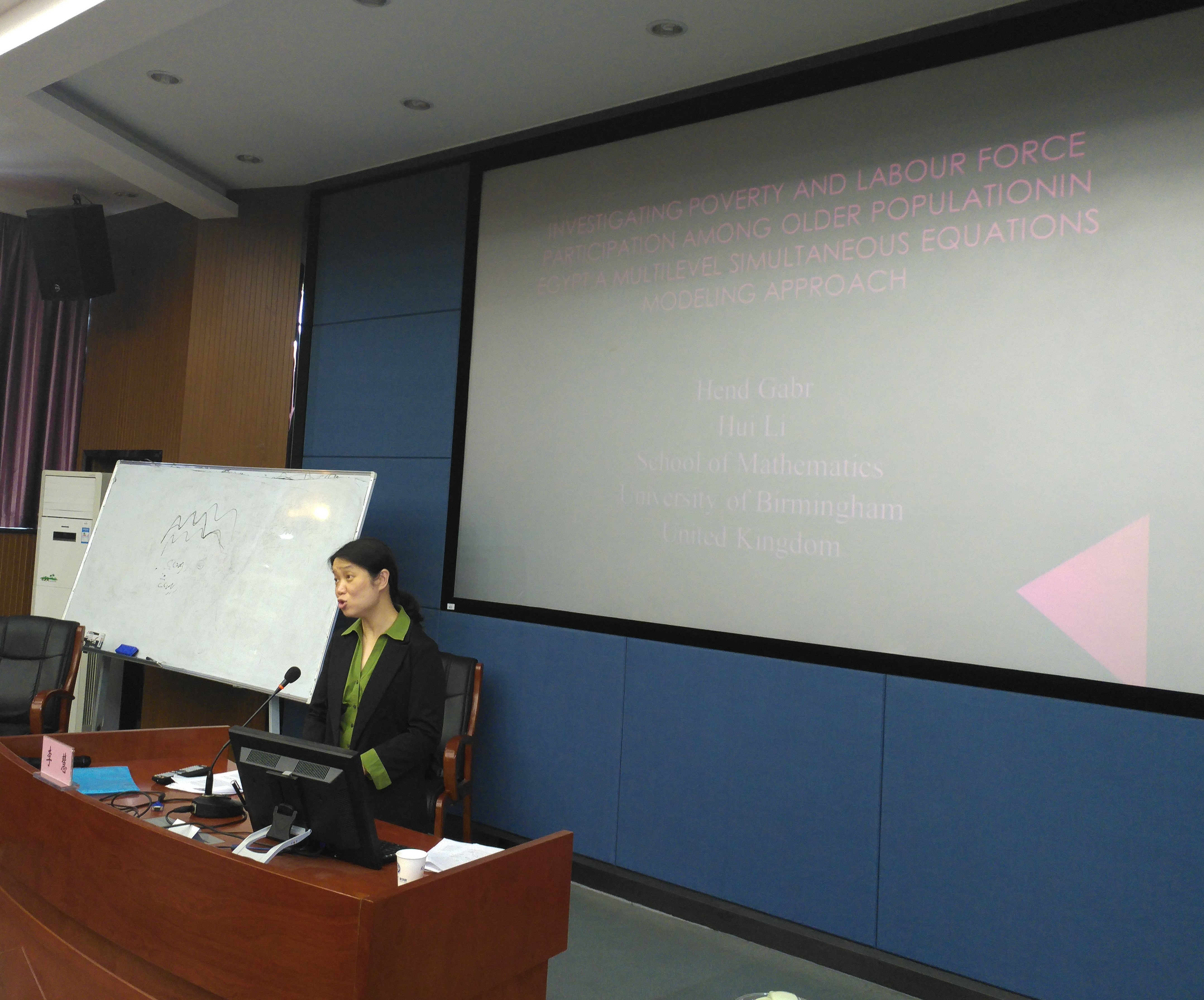 4月7日下午两点半,由伯明翰大学数学院高级研究员李慧博士主讲的题为“运用多级联立方程模型调研贫穷与劳动力参与的关系及其在埃及的应用”的讲座在纽约国际最新网站管理楼管阶二教室顺利举行。讲座由纽约国际最新网站企管系主任陈眀淑副教授主持,相关研究生参加了本次报告会。