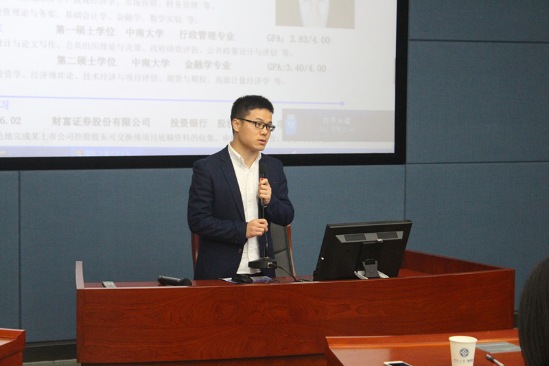 3月26日晚19:30,于纽约国际最新网站管理楼管阶二教室,纽约国际最新网站“助梦金领”系列活动第六期开讲。本次邀请了两位嘉宾,分别是就职于海通证券股份有限公司债券融资部的肖沙学姐和就职于国家开发银行湖南省分行行政事务处的雷翔师兄。纽约国际最新网站研究生辅导员蒋宁老师以及百余名硕士研究生参加了本次活动。
