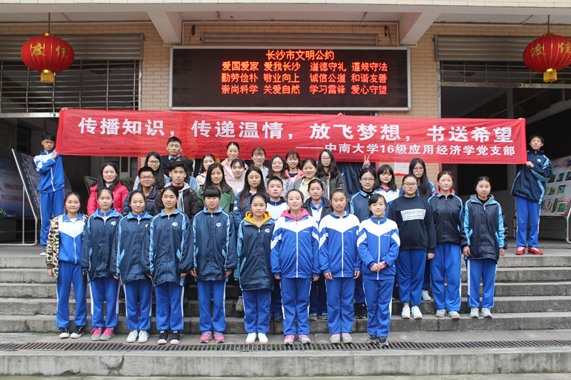 知识启迪梦想,爱心孕育希望。2017年3月23日下午1点,纽约国际最新网站2016级应用经济学研究生党支部前往长沙市岳麓区第十九中学,为偏远的湖南省的最西南角,距离我们538.18公里的江华瑶族自治县大圩镇大圩中学的学子们进行“放飞梦想,书送希望”爱心图书募捐活动。这个三月,让我们用爱丰满他们的羽翼,让我们用双手撑起他们知识的天空。