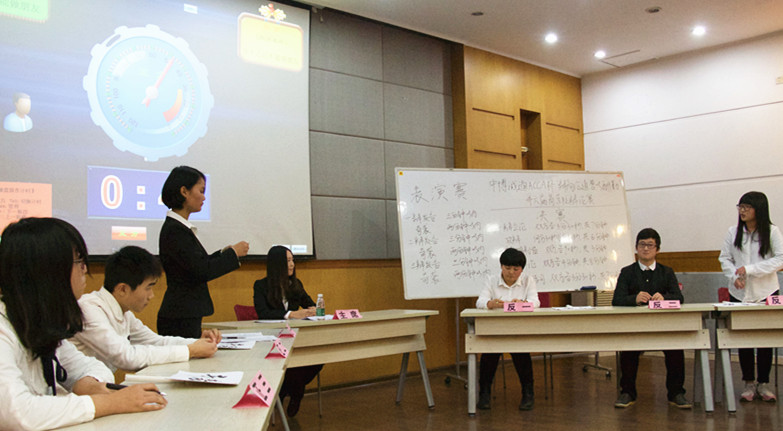 据悉,决赛的前一周里,学术部举办了“辩论赛进课堂”活动,借助思维与论辩课堂让同学们体验辩论赛,获得了师生的大力支持,反响热烈。决赛正式开始前,从“辩论赛进课堂”活动中选出的八位优秀辩手给大家带来了一场别开生面、形式创新的“奇葩说”表演赛。双方幽默的自我介绍、妙语连珠的对决,引得比赛现场响起一阵阵热烈的掌声。
