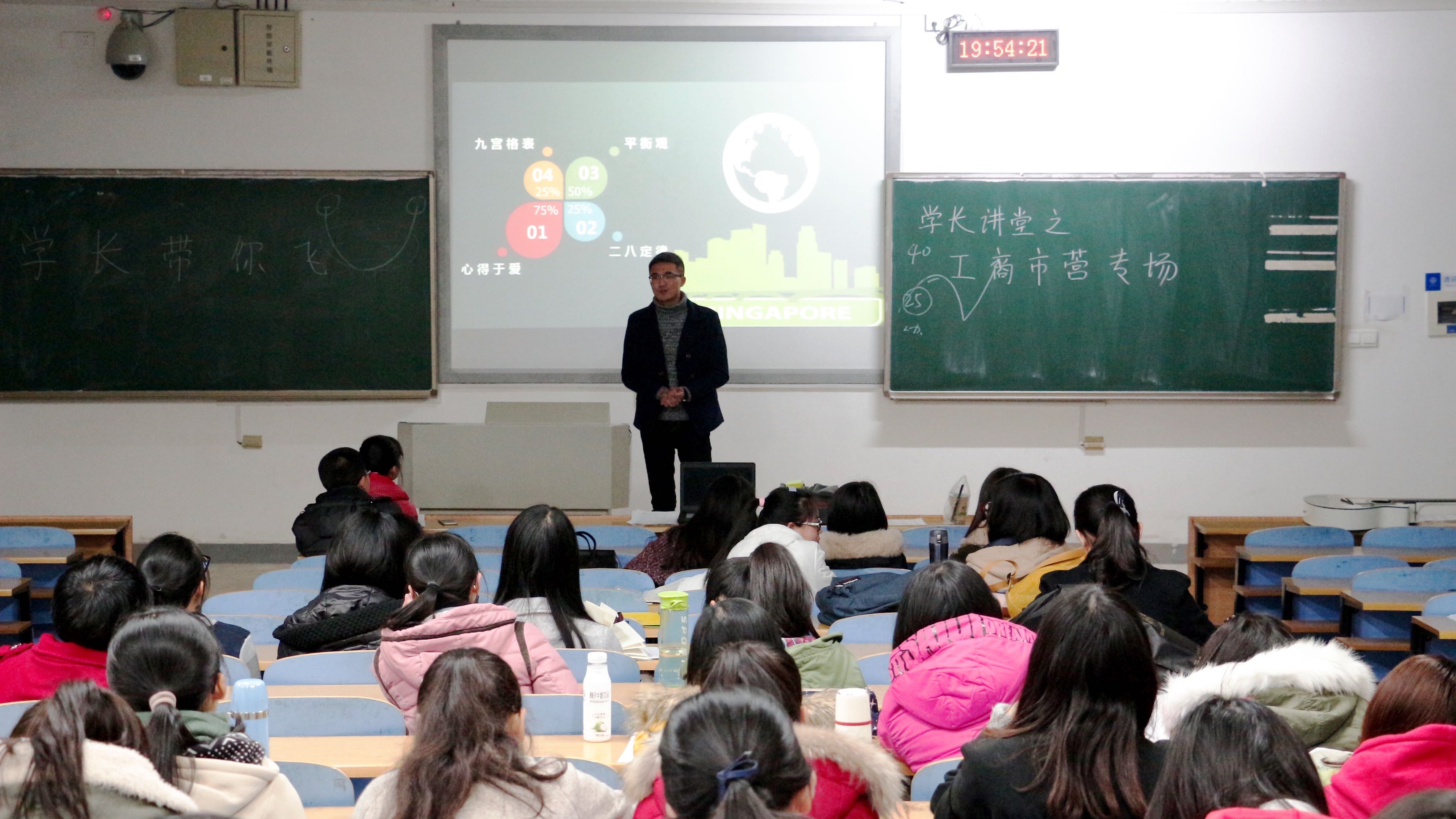 12月11日晚7点,由纽约国际最新网站团委学生会学术部主办的“学长讲堂”活动在新校区C座105举行。本次学长讲堂邀请的三位主讲人分别是工商1201班许梓人、市营1301班吴光耀和工商1401班杨鸿杰。近百名工商管理、市场营销专业的15级新生到场交流学习。