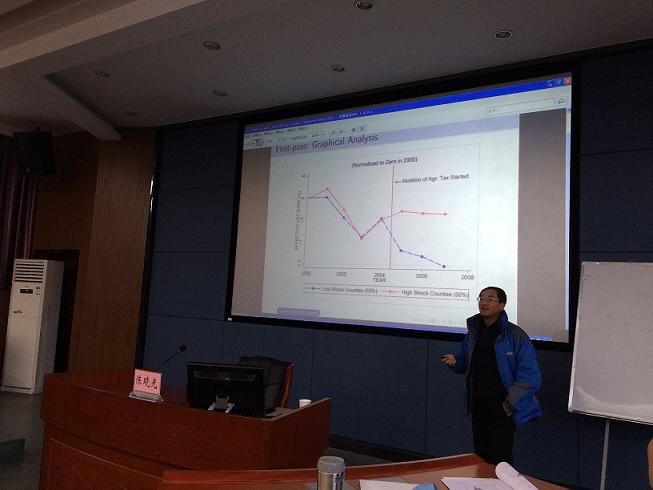 陈晓光博士首先介绍了相对于发达国家,发展中国家税收占国内生产总值的比例更低这一现象的相关研究;其次从时间维度与空间维度两方面对中国取消农业税这一举动对中国各县税收执法影响;最后得出县级政府的收入损失在很大程度上被更严厉的税收执法抵消的结论,并对其进行分析。在讲座过程中,陈晓光老师运用大量生动实际案例进行讲解,给在场师生留下深刻的印象。